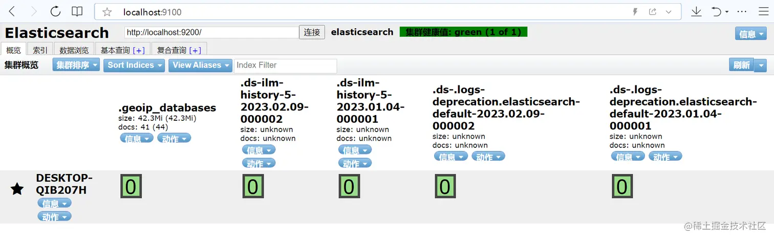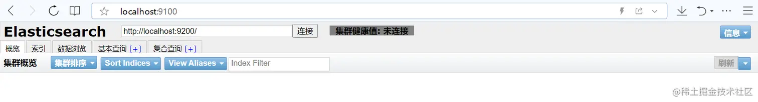 访问地址:http://localhost:9100/,即可看到Head插件已启动: