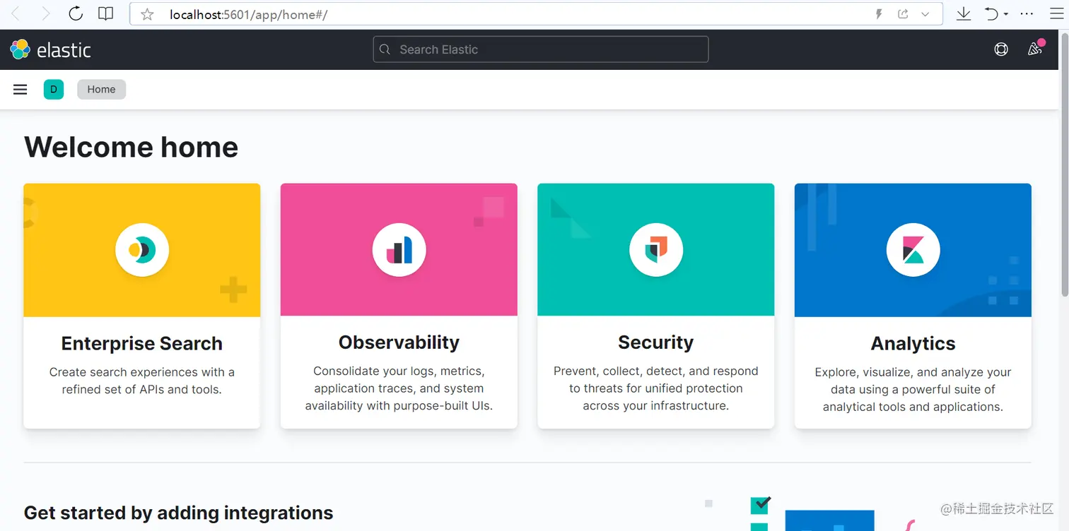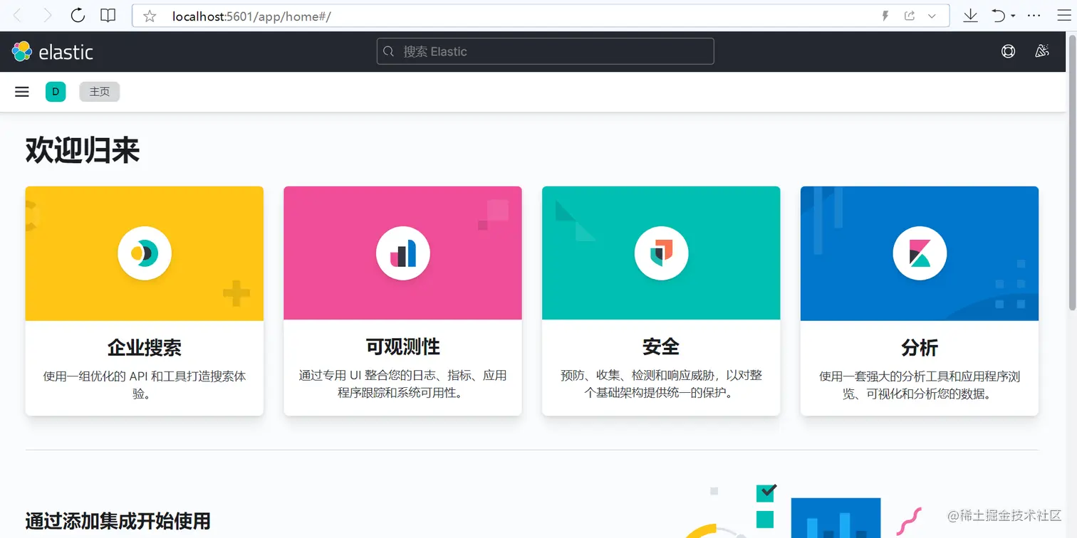 通过浏览器进入:http://localhost:5601/
