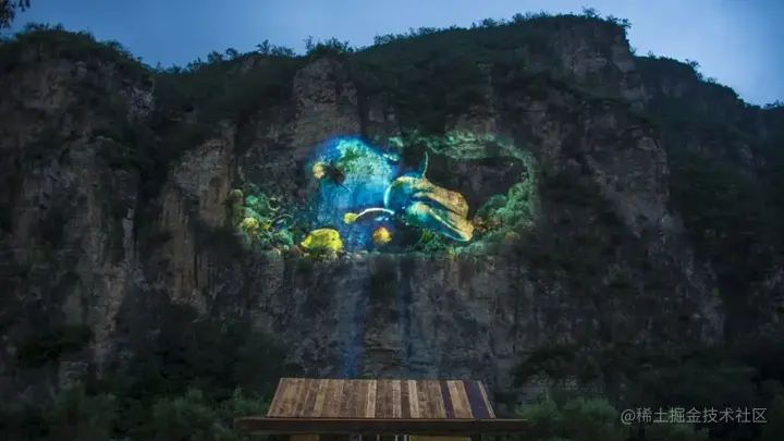 山体投影利用山体植被、树木、崖壁等特有的自然景观载体,运用声光、电、投影等技术,利用光影技术,将景区内的风景、人文、神话、传说,以全新的方式呈现出来,就像是电影里的场景,光影与山体融为一体,既增加了视觉的舒适性,又增加了山体的美感,让游客零距离的交流互动,形成了一道新的风景。