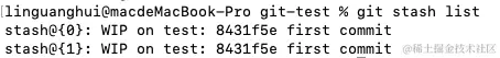 其中,stash@{0}、stash@{1}就是当前stash的名称