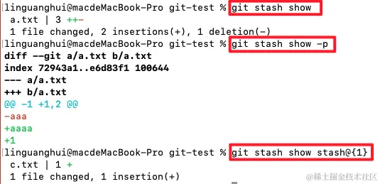 通过使用git stash show -p查看详细的不同