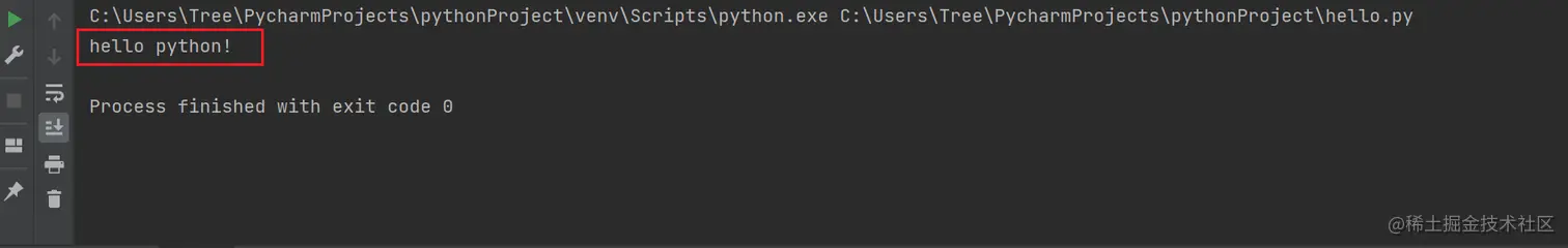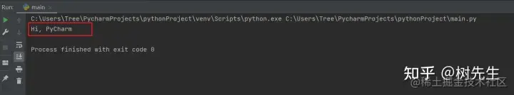 5、执行结果如下,正确输出了“Hi,PyCharm”