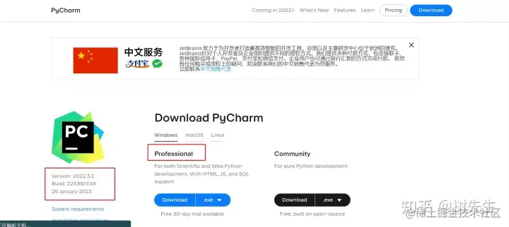 这里我们选择2022.3.2的专业版,社区版虽然免费,但功能有限