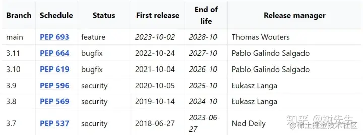 工欲善其事必先利其器,在使用Python开发程序之前,在计算机上搭建Python开发环境是必不可少的环节,目前Python最新稳定版本是3.11.1,且支持到2027年,如下图所示