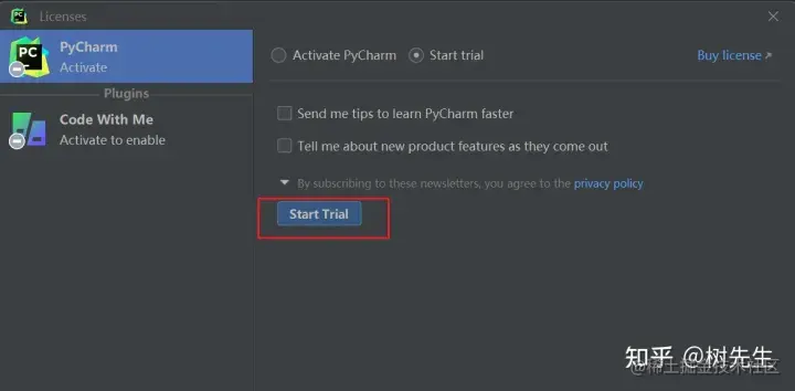 7、然后要求我们激活,这个我们后面再激活,这里选择“Start trial”,需要先注册/登录Jet Brains的账号
