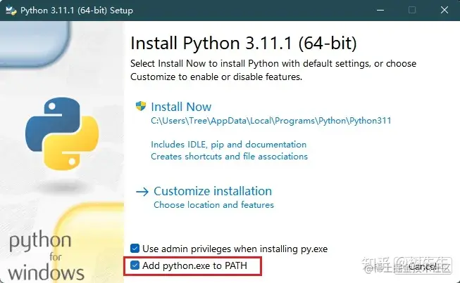 1、windows版的Python安装包是exe文件,只需要无脑点击即可,这里记得选中“Add python.exe to Path”,可以避免人工再去配置环境变量