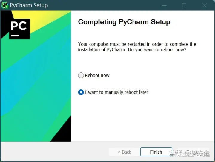 5、勾选“I want to manually reboot later”选择晚点重启,当前你也可以选择即刻重启,最后点击finish完成