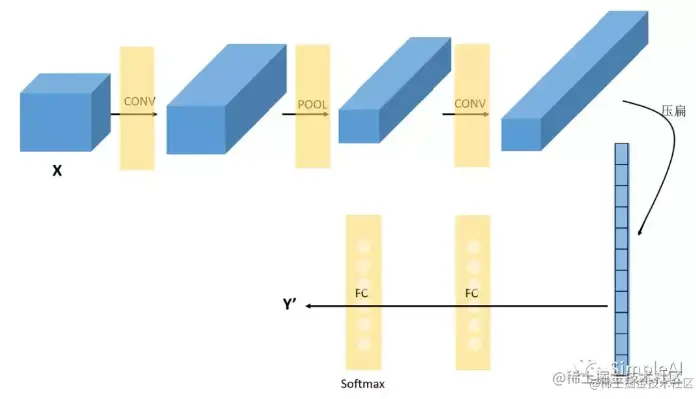 上面这个CNN的结构可以用:X→CONV(relu)→MAXPOOL→CONV(relu)→FC(relu)→FC(softmax)→Y来表示。这里需要说明的是,在经过数次卷积和池化之后,最后会先将多维的数据进行“扁平化”, 也就是把 (height,width,channel) 的数据压缩成长度为 height × width × channel 的一维数组,然后再与 FC层连接,这之后就跟普通的神经网络无异了。可以从图中看到,随着网络的深入,图像越来越小,但是channels却越来越大了。在图中的表示就是长方体面对我们的面积越来越小,但是长度却越来越长了。