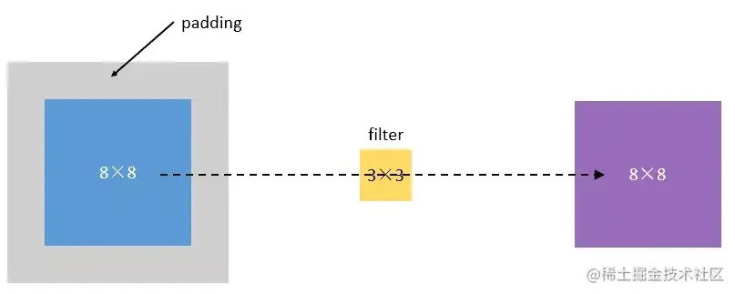 从上面的引子中可以知道,原图像在经过filter卷积之后,变小了,从(8,8)变成了(6,6)。假设再卷一次,那大小就变成了(4,4)了。这样主要有两个问题: