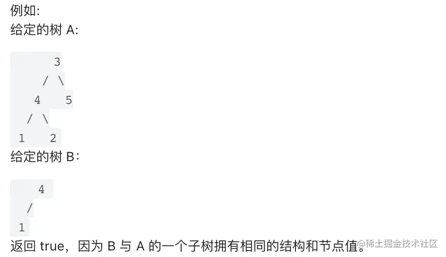 if (A == null || A.val != B.val) return false; // A树遍历完毕了,但是B树还存在未对比的节点
