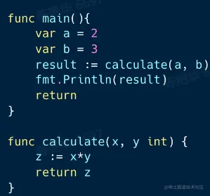 main()函数调用本地函数calculate(x,y int)