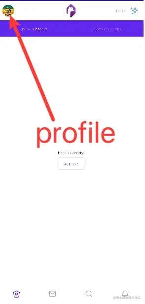 在应用的首页你可以看到底部的四大功能栏,和其他社交软件差不多,你可以自行摸索和发文尝试,相信没有什么难度,就不在这里赘述了。重点讲一下首页左上方的profile部分,也就是你看到的左上角头像部分,我们将对这个部分的个人数据进行认识并设置,这将有助于我们更好的在Nostr网络上玩耍。