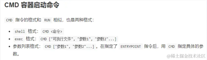 CMD命令指定了容器启动后要干的事情