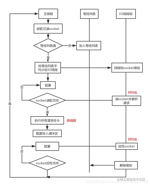 2)多线程任务可以分摊Redis同步IO读写负荷。