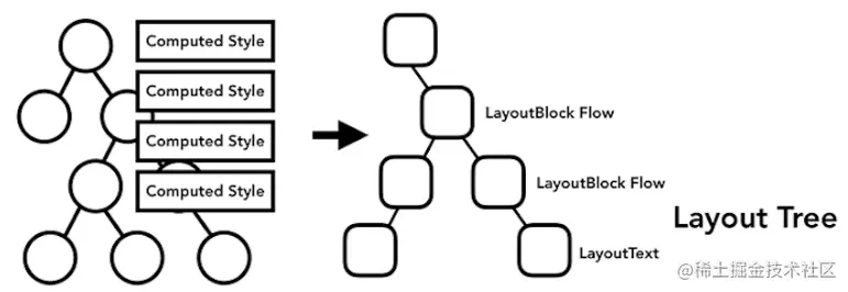 多个 LayoutBlock Flow 组成了 LayoutTree 渲染树 。 Layout 渲染树 可能和 DOM 树 一样,但因为 display:none,或者一些 css 伪元素的 content 定义和 DOM 树 有差异。不同的 LayoutBlock Flow 会根据当前元素的 几何属性 确认了互相间的“距离”,从而在从上至下的排序中,调整好布局方式。