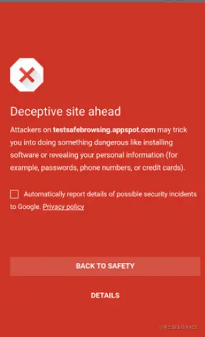 根据 Response 信息中的 Content-Type 响应头来判断该数据资源属于哪种 媒体类型,比如:text/html、image/png... 同步,浏览器还会开启安全监测,用来告知用户哪些链接是危险链接,给与警告提示: