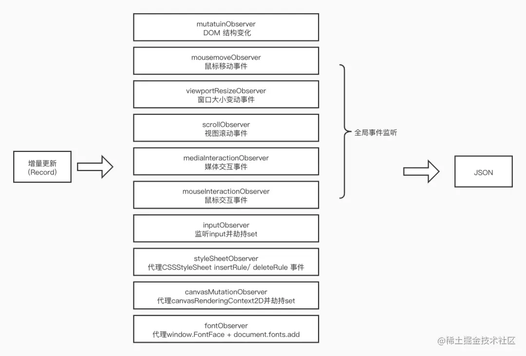 rrweb 开源库主要由 rrweb-snapshot、rrweb 和 rrweb-play 三部分组成,并且提供了动作筛选,数据加密、数据压缩、数据切片、屏蔽元素等功能。
