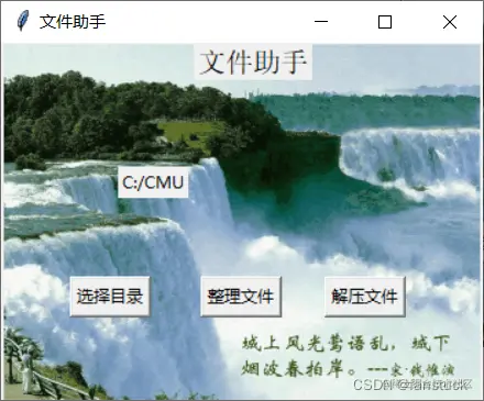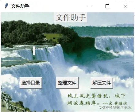 首先我们肯定Python进行编程,需要用到其他的库。其中我们需要一个界面可以进行交互。该界面可以选择我们的功能模式。还有一个选择目录的功能,能够将目录路径读取并且显示。那么我们先从界面来考虑,既然是小程序那就设计成窗口的样子。