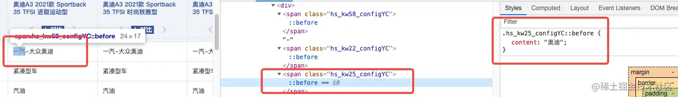 仔细观察审查元素信息,在styles栏里发现了font-family,这就是自定义stonefont字体,可以把乱码显示成正常的数字。