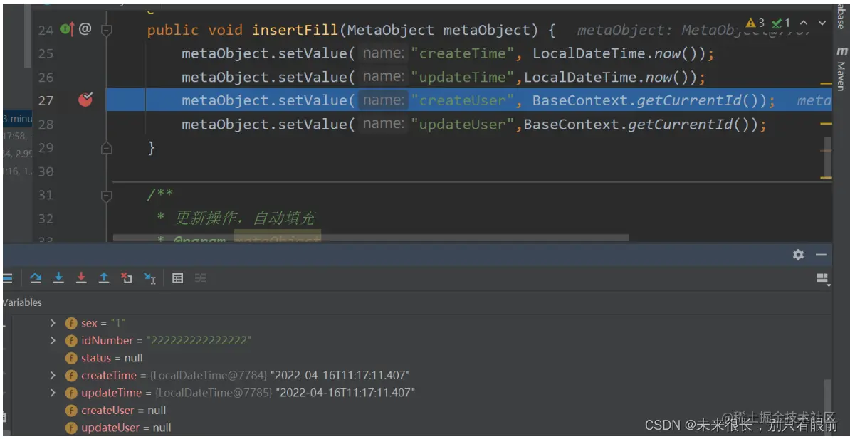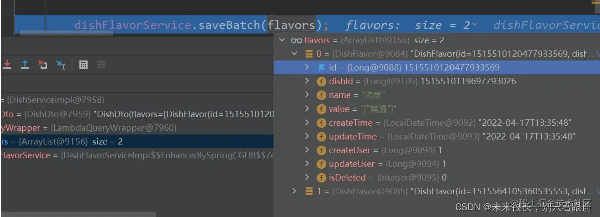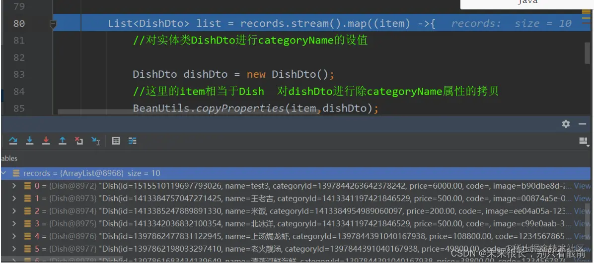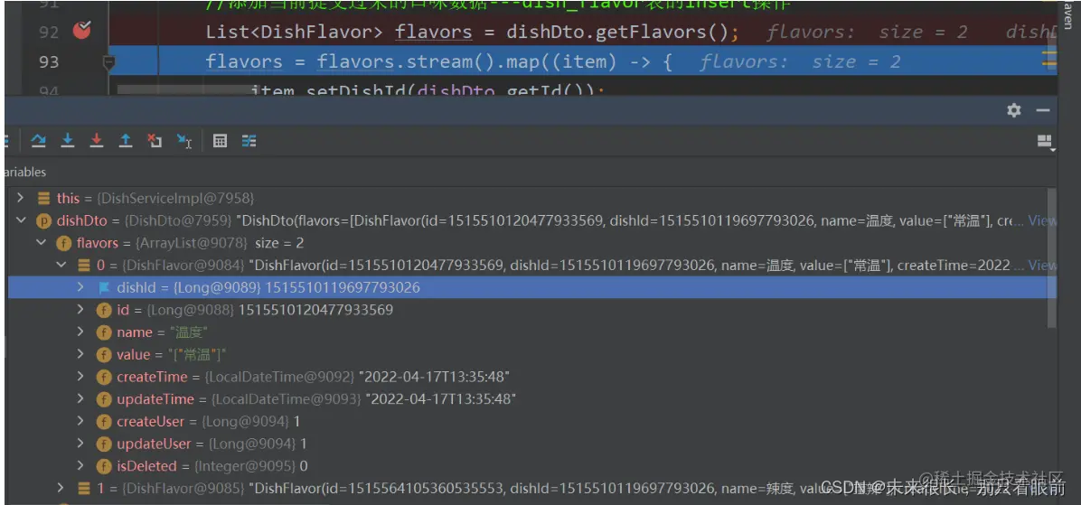 //注意上面拿到的setmealDishes是没有setmeanlId这个的值的,通过debug可以发现