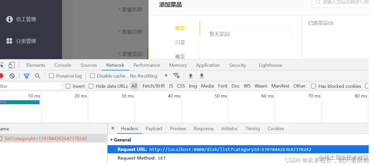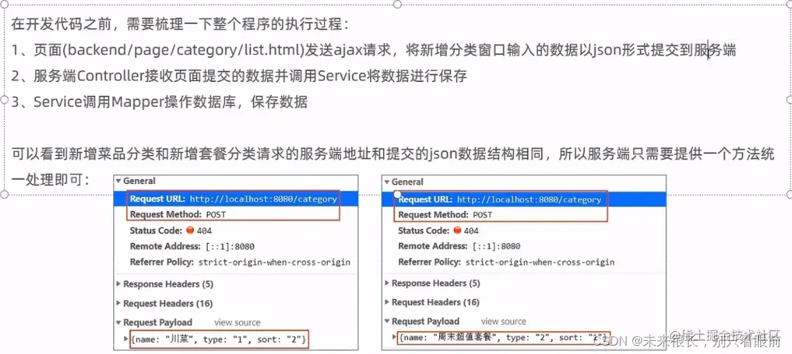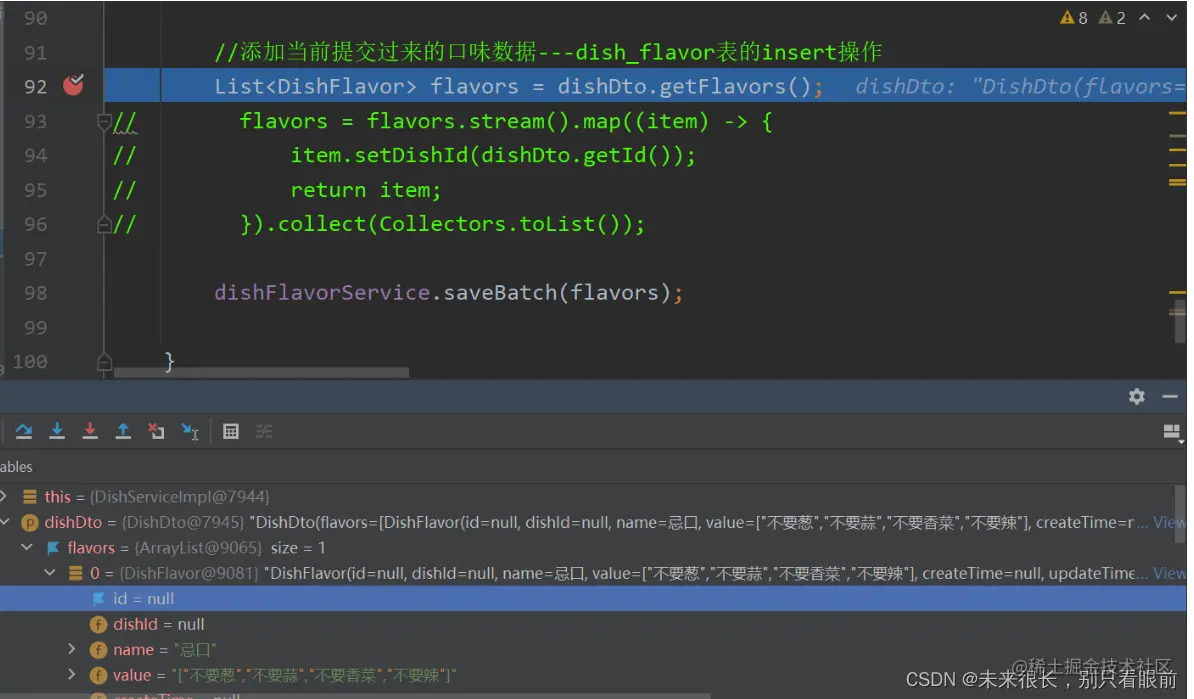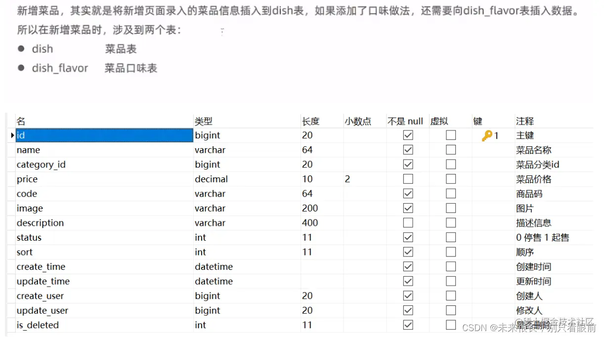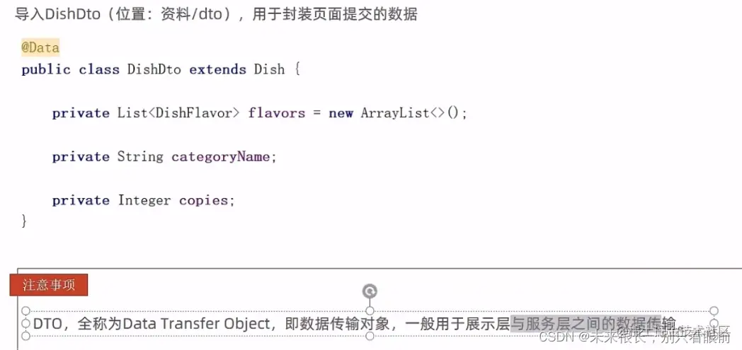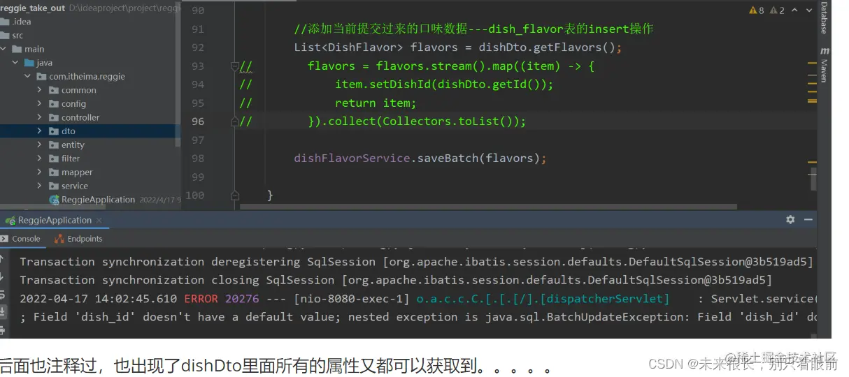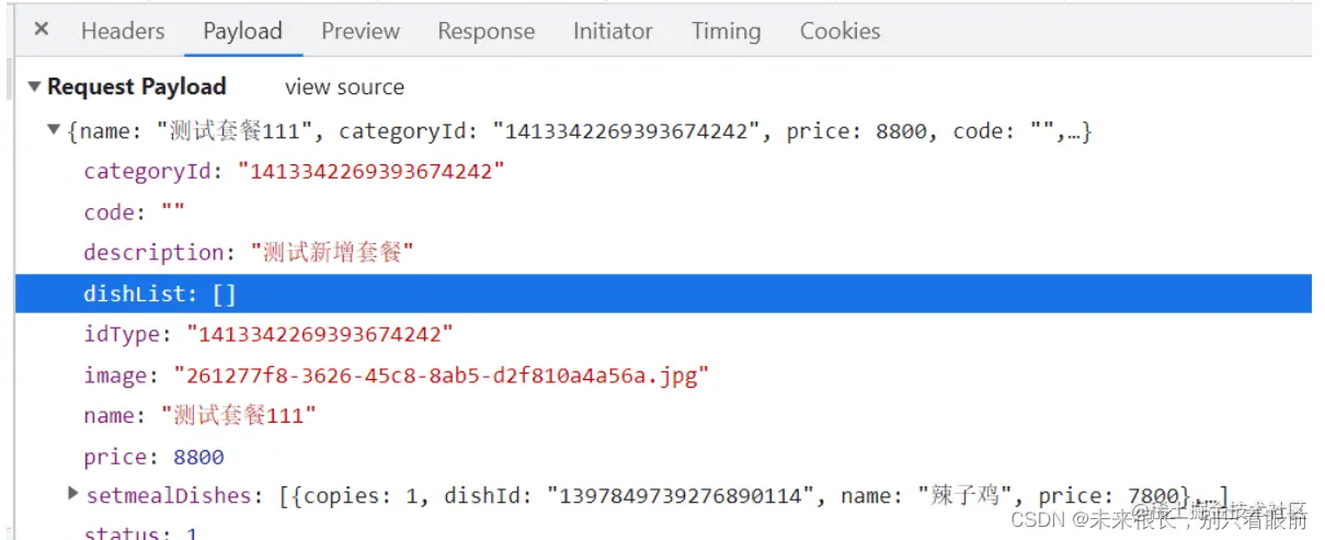 编写controller:上面的dishList,我们数据库并不需要这个数据,所以接收数据的实体类没有dishList这个属性也没有关系,前端传过来的数据都是自动映射到接收数据的实体类的属性上的,没有对应起来就不会映射。