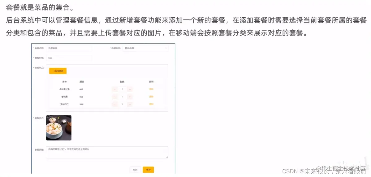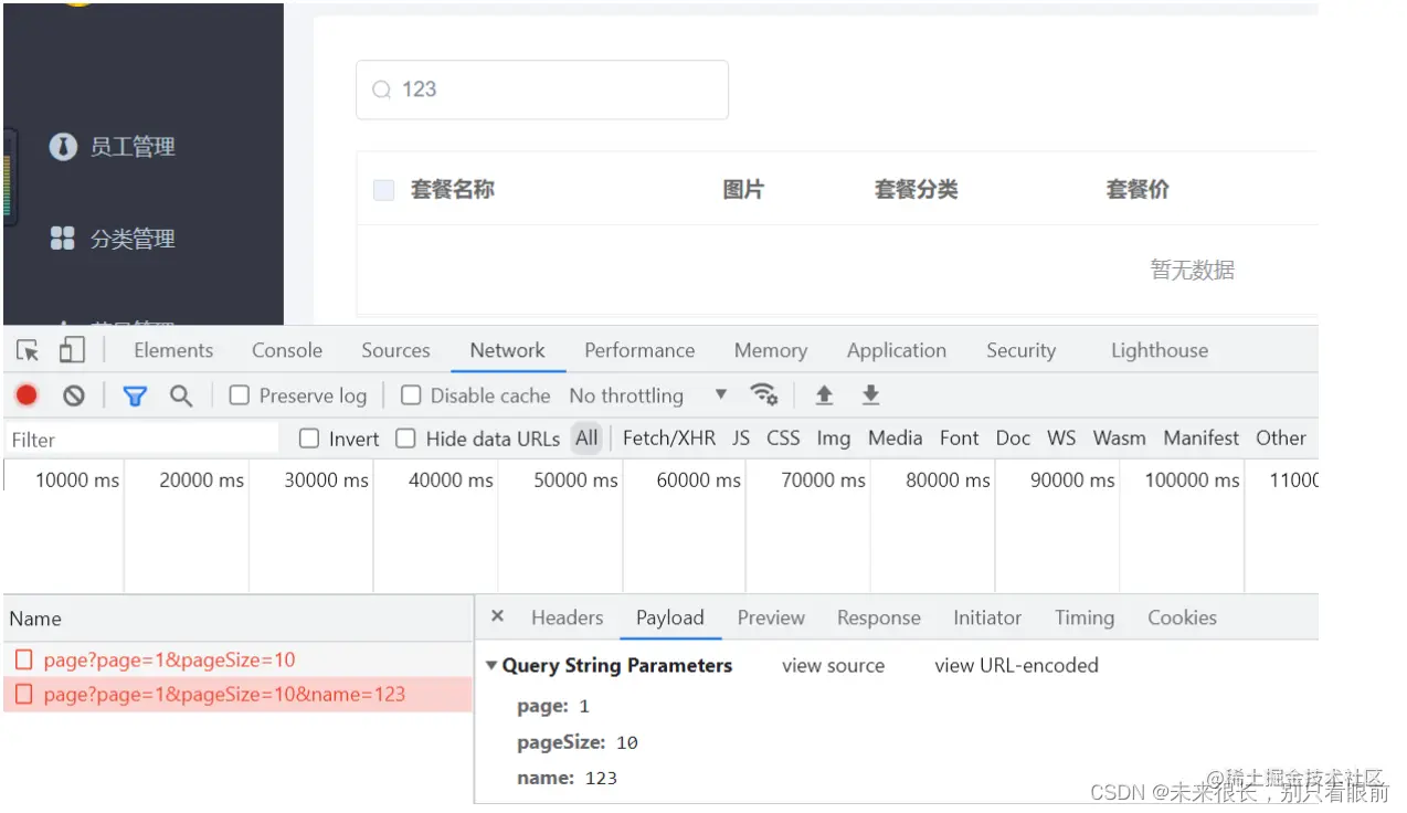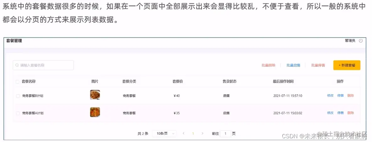 * 虽然不会报错但是分页的数据的套餐分类的名字是显示不了的;