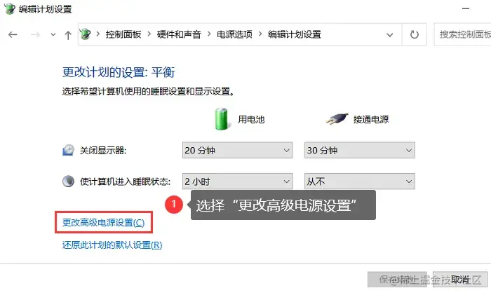 第3步: 选择【更改高级电源设置】;