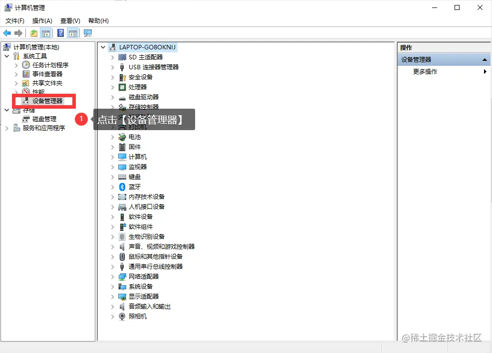 **步骤2:**进入【计算机管理】页面后,点击左侧的【设备管理器】。
