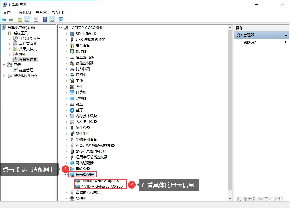 **步骤3:**接着在右侧的具体选项中,找到【显示适配器】,点击后,即可看到具体的显卡信息。