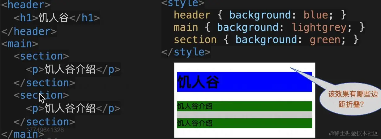也就是h1的外边距成为header的外边距,p的外边距成为section的外边距后又成为main的外边距