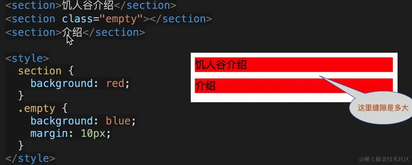上图中,因为.empty的元素里面没有内容,上下外边距会折叠为10px