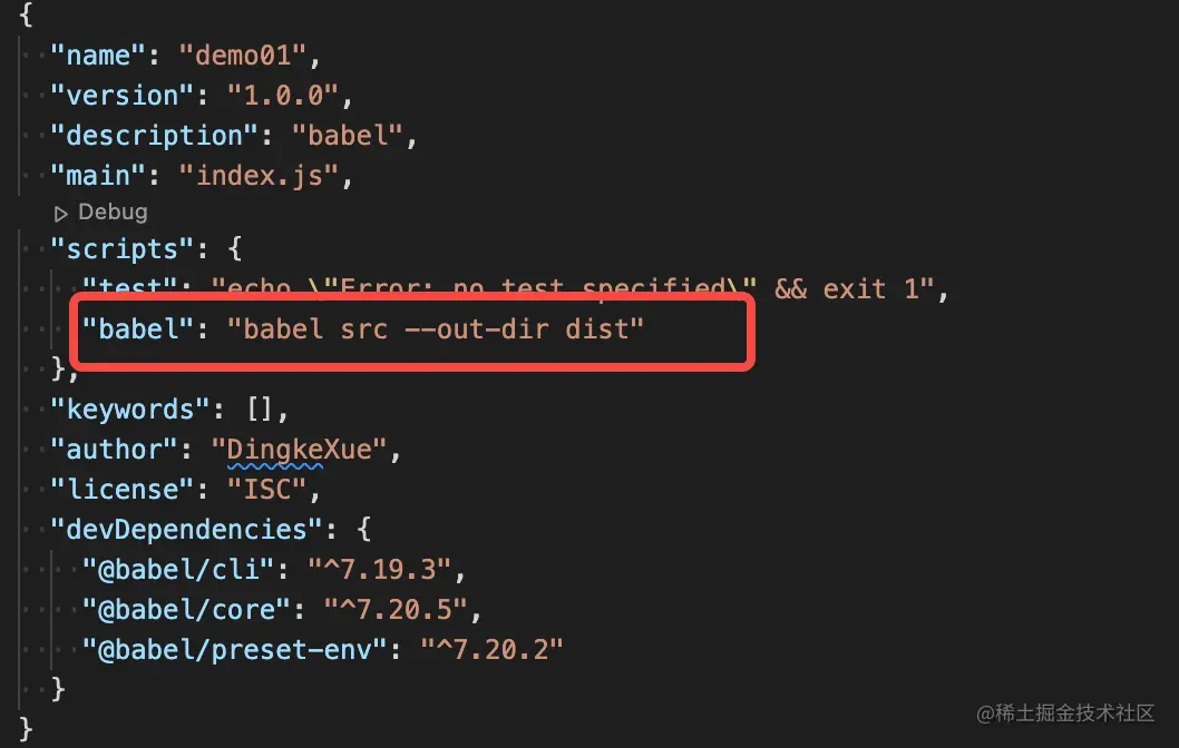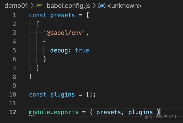 - 配置中的 debug 用于打印 babel 命令执行的日志;