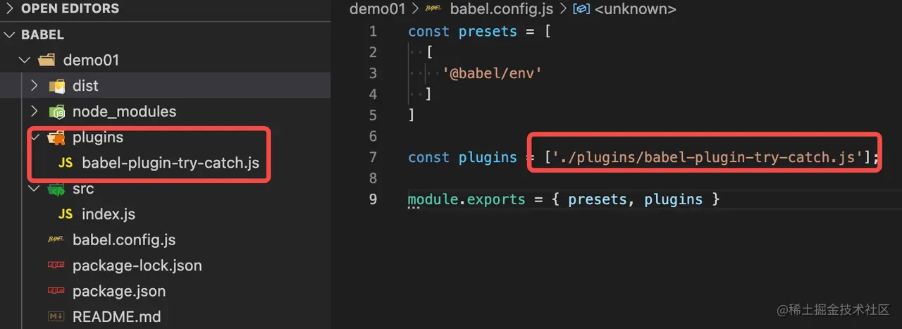 上面介绍了 Babel 的原理,知道了 babel 是如何进行代码解析和转换,以及生成最终的代码。那么转换阶段,babel 是怎么知道要进行哪些转换操作呢?答案是通过 plugin,babel 为每一个新的语法提供了一个插件,在 babel 的配置中配置了哪些插件,就会把插件对应的语法给转化掉。插件被命名为 @babel/plugin-xxx 的格式。