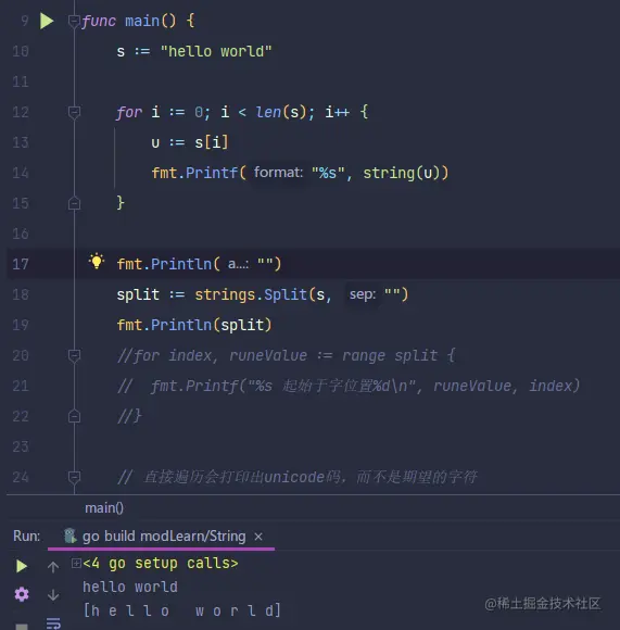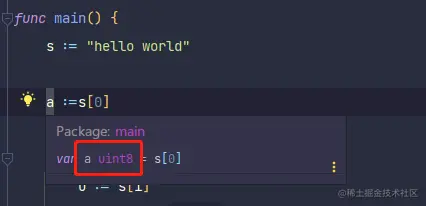直接使用 for循环来打印字符串,并没有达到想要的效果,将每个字符打印出来,而是以十六进制打印出了它的byte值。这是因为Go的字符串其实就是uint8数组,如下图: