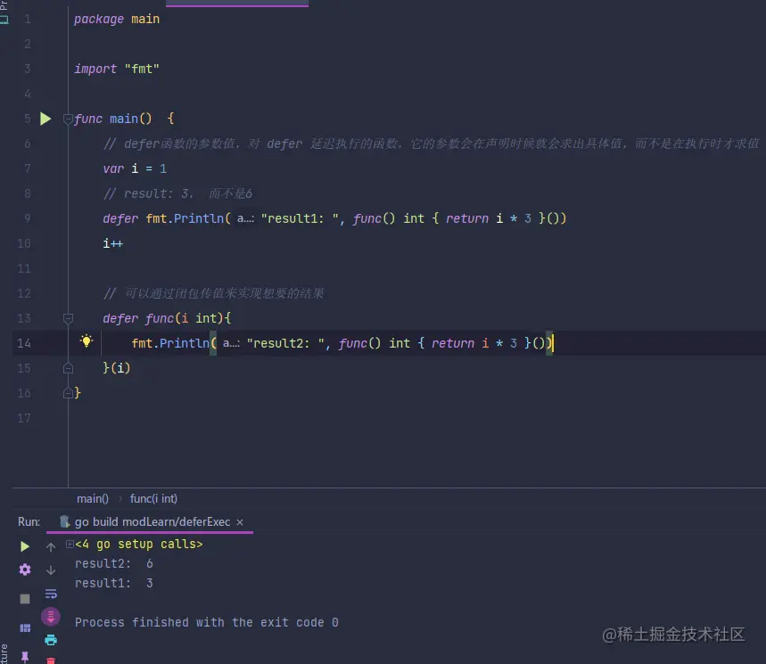 defer fmt.Println("result1: ", func() int { return i * 3 }())