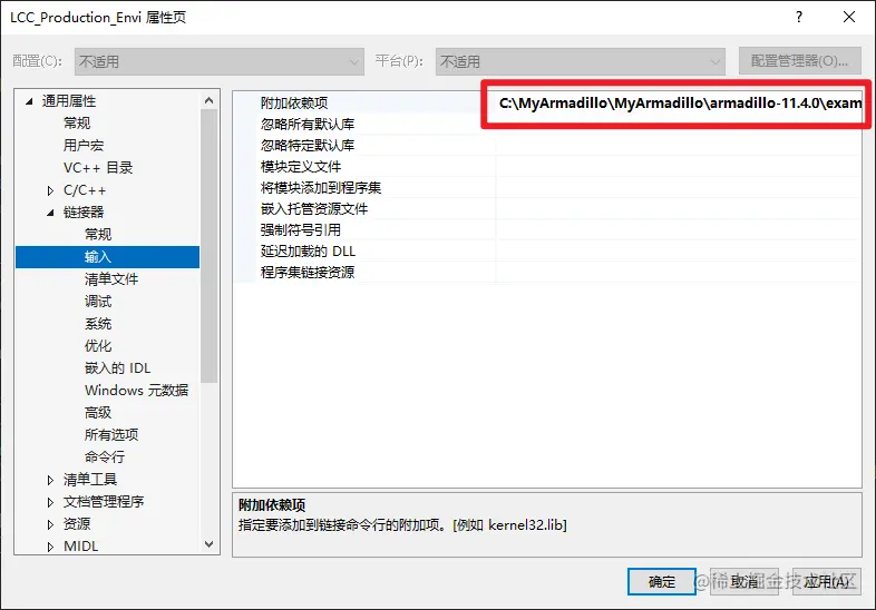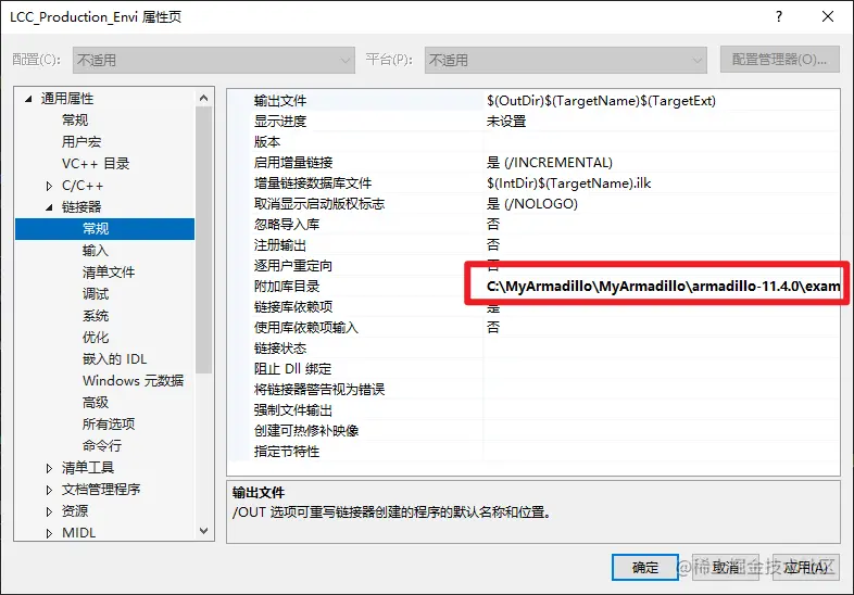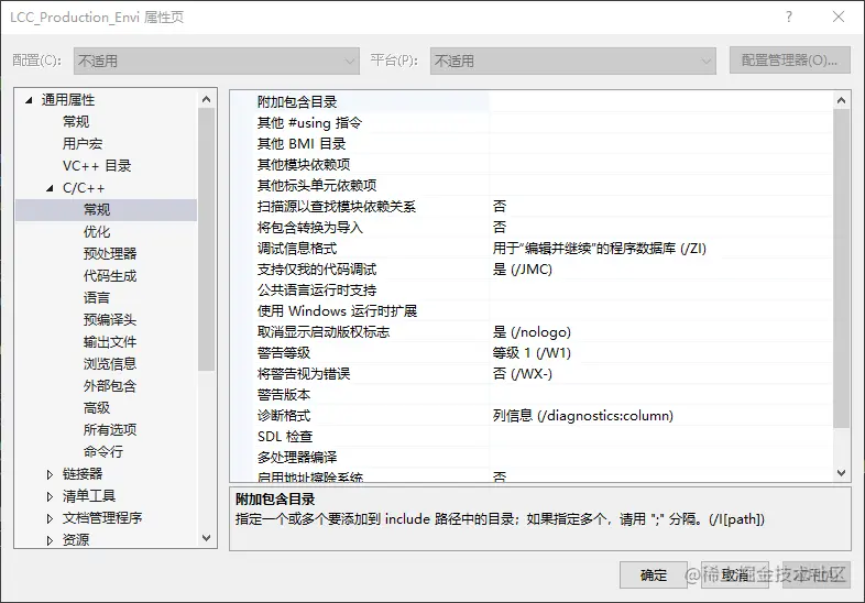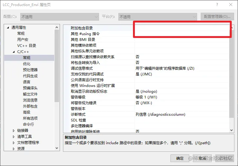 此外,我们可以在原有项目的附加包含目录、附加库目录中,通过复制“计算的值”窗口中的内容,实现跨行批量复制,如下图所示。