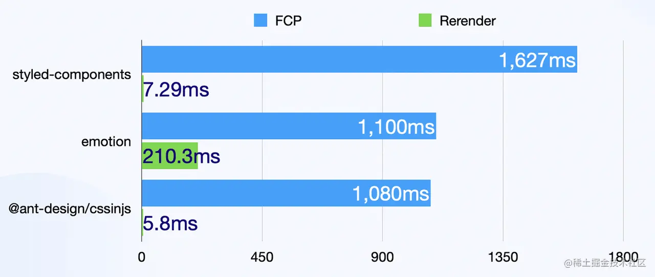 在上述的对比中,其实并不能说 antd 一定优于 styled 和 emotion,而是在 antd 的组件级使用场景下,我们做了相应的优化以取得了性能上的优势。反过来说,由于『组件级』的局限性,antd 的 CSS-in-JS 方案并不能适用于日常构建应用。
