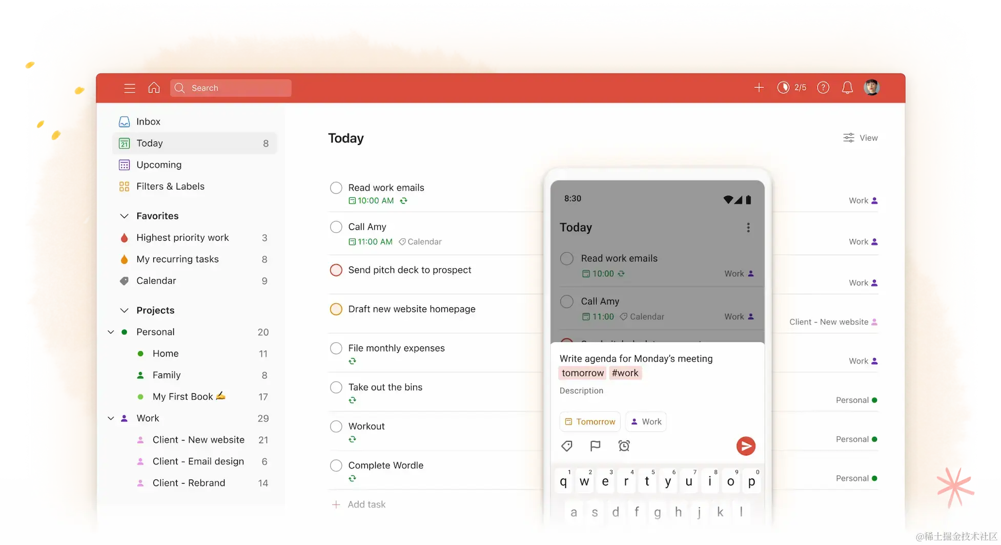 感觉自己每天事情都很多,忙起来没有方向又没有重点,一天到头也不知道做了什么?如果你也有这种困扰,可以试试用Todoist为自己整理一个待办事项。默认会显示当前一周七天,可以在每天中直接添加任务,设置提醒日期,还可以添加标签优先级。Todoist有个特色功能“均衡任务”,比如你在周五有海量的待办工作,那么Todoist会尝试将一些时效性不强的任务调整到周四或后延至下周。