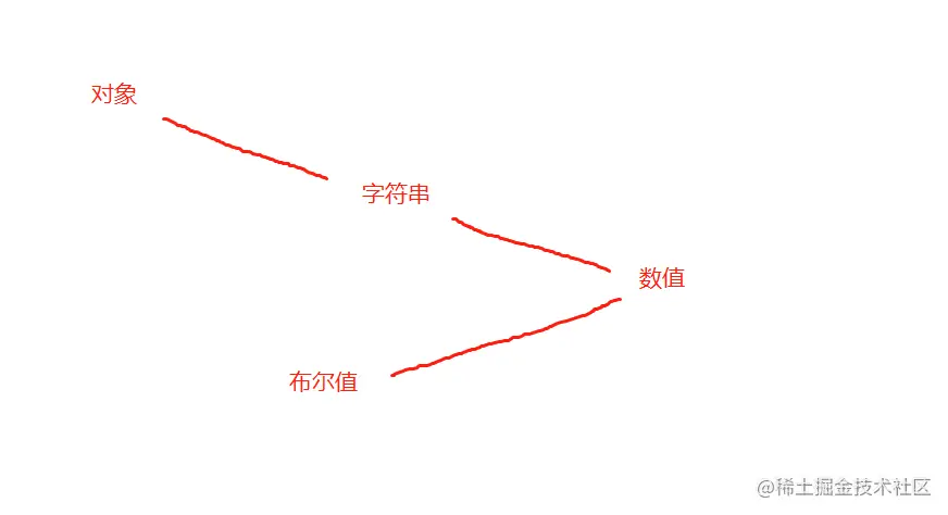 如上图,任意两种类型比较的时候,如果不是同一个类型比较的话,则按照如图方式进行相应类型转换,如果对象和布尔比较的话:对象->字符串->数值 布尔值->数值