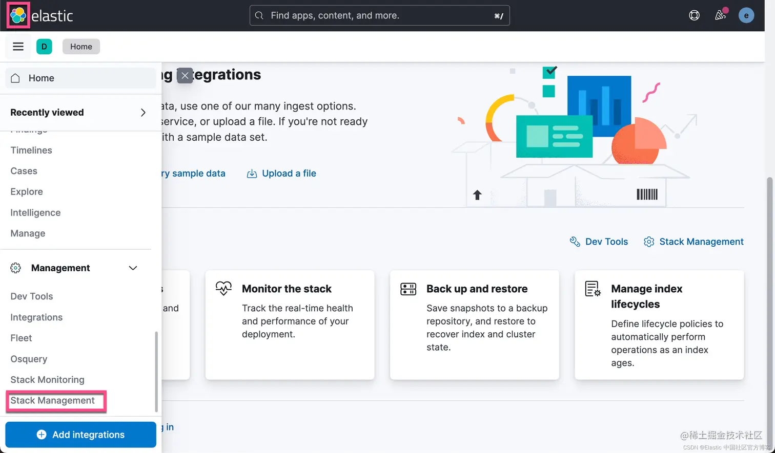 运行完上面的命令后,我们可以在 Kibana 中的界面中进行查看: