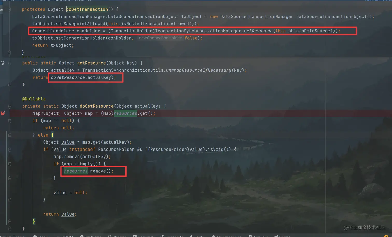 TransactionSynchronizationManager.bindResource(this.obtainDataSource(), txObject.getConnectionHolder());