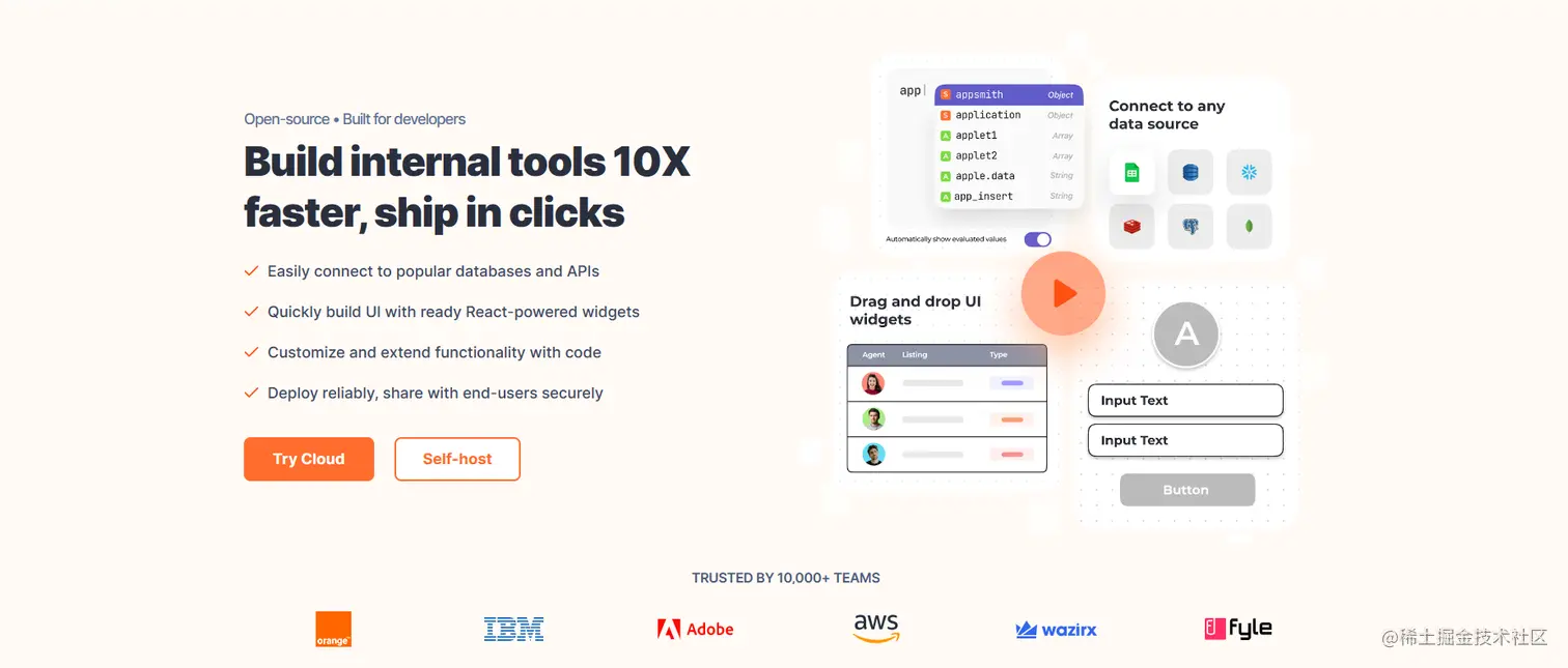 Appsmith 是一款开源的低代码框架,其主要用于帮助用户及团队更快、更协调地完成构建管理面板、内部工具和仪表板等,且允许拖放UI 组件来构建页面,用户可以通过Appsmith连接到任何API、数据库或 GraphQL 源,并支持使用JavaScript 语言编写逻辑,用户还可以在短时间内就完成对于内部应用程序创建,如仪表板、管理面板、CRUD应用程序等。