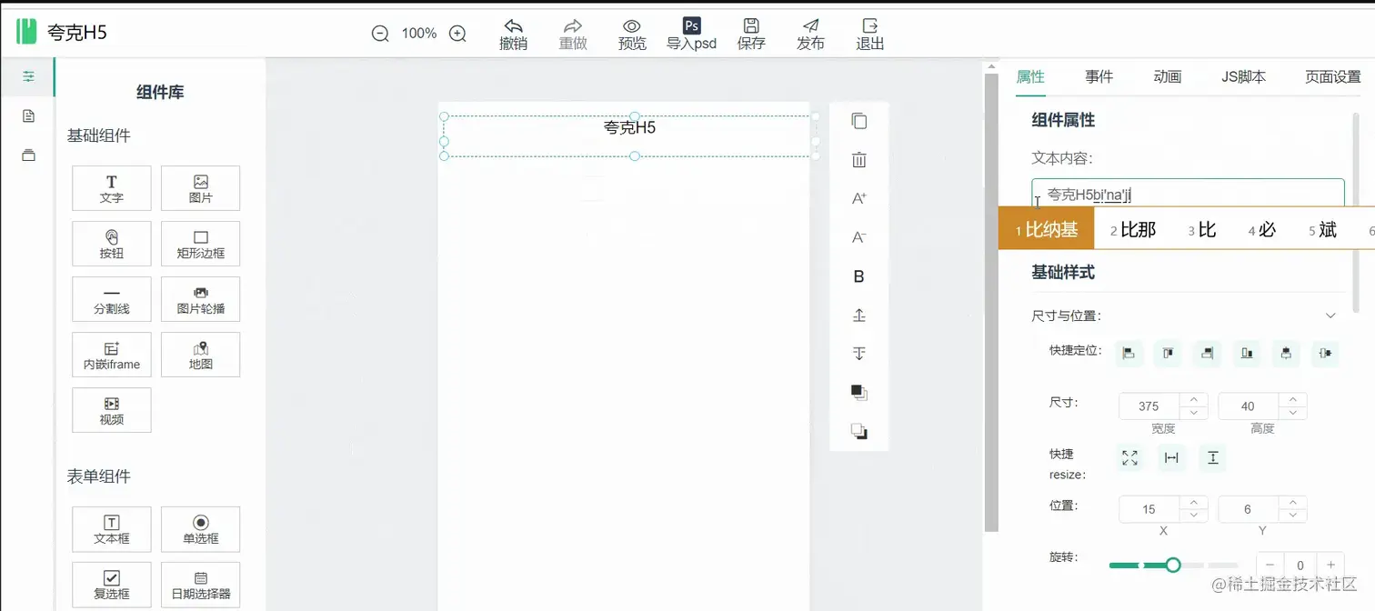 quark-h5是一个基于vue2 + koa2的 H5制作工具,和大多数的前端低代码框架一样,采用的是编辑器生成页面JSON数据,服务端负责存取JSON数据,渲染时从服务端取数据JSON交给前端模板处理。让不会写代码的人也能轻松快速上手制作H5页面。其用处类似易企秀、百度H5等H5制作、建站工具。