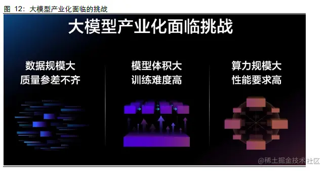 算法、算力和数据是人工智能实现场景落地三驾马车。其中人工智能算法模型的突破有两个方向:新架构和更大量级的参数量。大模型的出现相较于深度学习,省去了一开始大量的特征工程,通过提升参数量、引入Prompt 使得生成式文本进一步突破。目前大模型已在NLP 取得较为成熟的进展,之后预计向多模态发展,模型泛化性的不断提升使得通用型AI 有望到来。