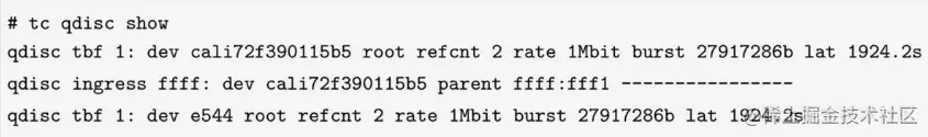 这个配置文件会告诉Kubelet去调用CNI的默认bandwidth插件,然后根据Pod annotation里带宽的ingress/egress值进行容器上行/下行带宽的限制。当然,CNI插件最后调用的还是Linux tc工具,主机上的tc配置如下所示: