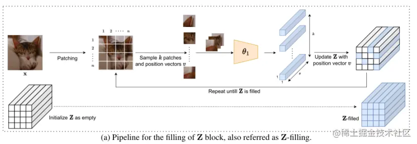 PatchGD 的核心是构建或填充 Z 块。无论输入的哪些部分用于执行模型更新,Z 都会根据从前几个更新步骤中为图像的不同部分获取的信息构建完整图像的编码。