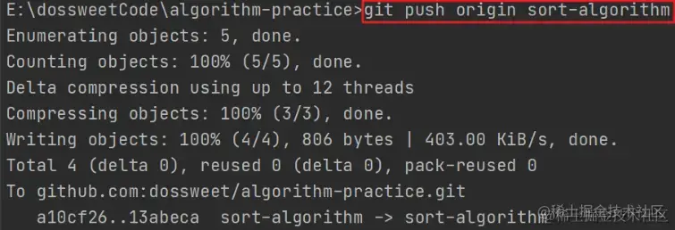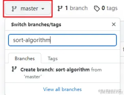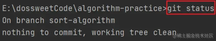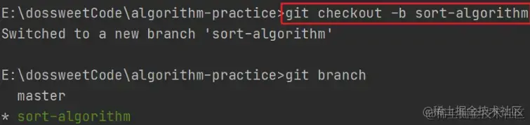 然后执行git branch就可以发现本地有两个分支了,而且当前处于sort-algorithm分支。