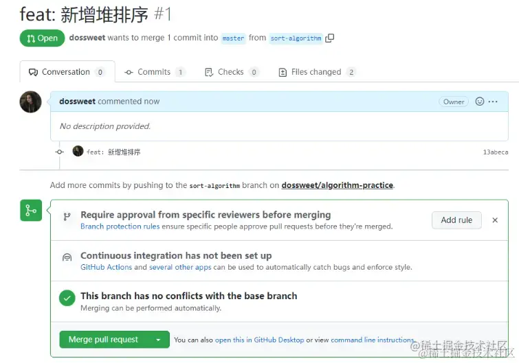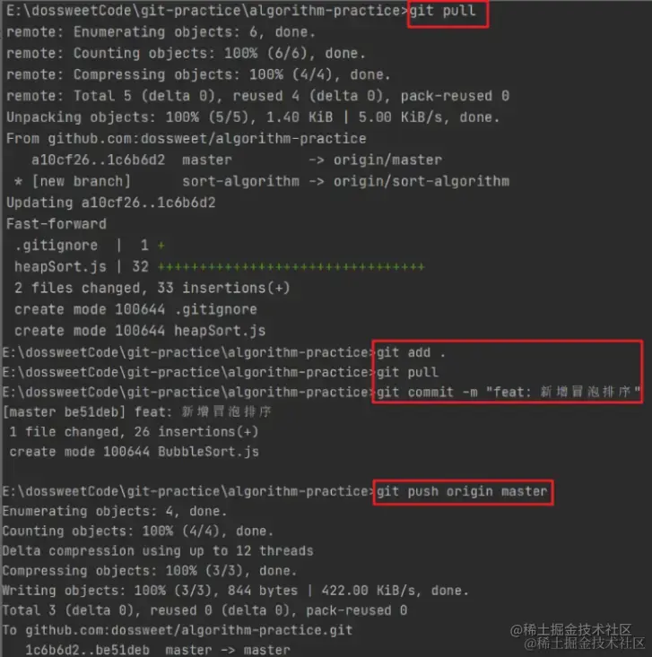 当分支代码被merge后,本地和远程就可以选择删除sort-algorithm这个分支啦! 到此步,就完成了一次本地代码和远程代码的同步。