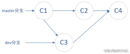 并且如果开发者B想直接merge代码到项目主分支的话,git会报错提示:当前主分支版本 (C1) 落后于远程主分支版本 (C2) ,此时我们需要先执行git pull命令,再在本地主分支上执行merge分支dev的操作,然后再推送到云端。