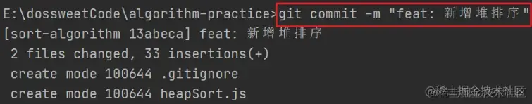 接着我们执行git commit命令来把添加至本地暂存区的代码提交至本地项目仓库中。 格式为:git commit -m "提交信息"